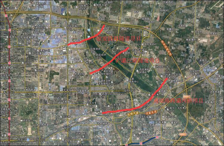 我公司承擔(dān)的西安浐灞生態(tài)區(qū)規(guī)劃區(qū)域“一橋兩隧”項(xiàng)目修建性詳細(xì)規(guī)劃方案設(shè)計(jì),設(shè)計(jì)內(nèi)容包括:錦堤六路、歐亞四路穿灞河隧道工程項(xiàng)目(隧道約1886-2596m);錦堤三路、浐灞三路穿灞河、浐河隧道工程項(xiàng)目(隧道約2194m);通塬路跨灞河橋工程項(xiàng)目(橋梁約820m)。工程總投資約26億元。