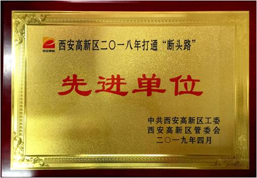 打通“斷頭路” 解決出行難——我公司榮獲西安高新區(qū)2018年打通“斷頭路”先進單位榮譽 4月19日下午,西安高新區(qū)召開“進萬家門、知萬家事、解萬家憂”暨“斷頭路”打通工作總結(jié)推進大會,會上對高新區(qū)“進、知、解”活動及“斷頭路”打通工作中取得突出成績的單位和個人進行了表彰。我公司榮獲2018年打通“斷頭路”先進單位榮譽,公司副總工程師謝純德被授予2018年打通“斷頭路”先進個人稱號,公司副總經(jīng)理馬明菊代表公司上臺領(lǐng)獎。