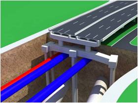 該立交位于城市主要交通干道,地面交通繁忙,地下管線密布,同時與地鐵四號線交叉,設計難度較大。項目設計組采用跨越地鐵隧道及管線的三種類型異形承臺設計,有效解決了管線、地鐵與樁基平面沖突問題,采用大跨徑寬幅漸變連續鋼箱梁設計,便于施工,大幅節約工程投資,取得了較好經濟效益和社會效益。