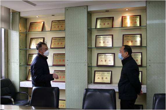 碑林區領導蒞臨我公司檢查指導復工復產工作 3月3日上午,碑林區稅務局局長龐延榮一行蒞臨我公司對企業復工復產情況進行督導檢查,現場查看了疫情防控措施落實情況,指導企業抓緊做好復工復產工作。公司董事長兼總經理高中俊、財務資產部、綜合辦公室主要負責人陪同檢查。