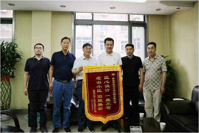 6月23日上午,陜西建工集團第一建設集團有限公司商務部部長雷濤一行蒞臨我公司,將一面寫有“匠心設計一絲不茍 老舊小區 舊貌換新”的錦旗送到我公司副總經理王社平手中,以感謝項目設計組成員的精心設計、優質服務和辛苦付出,并表達了雙方開展更深層次合作的美好期望。