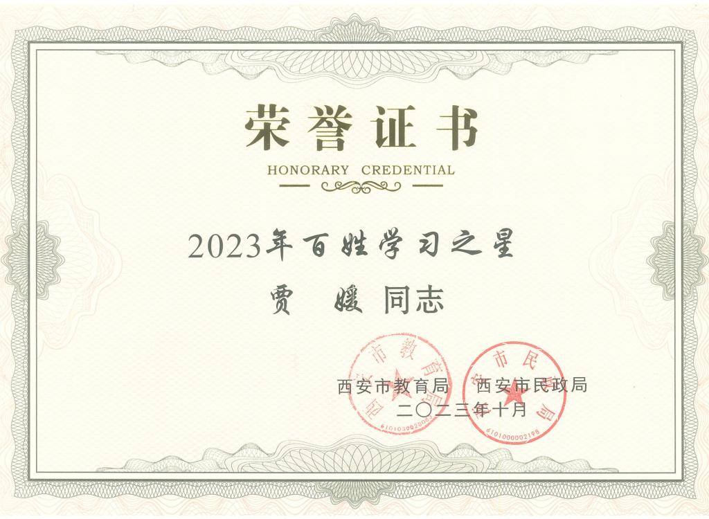 10月27日上午,由西安市教育局、西安市民政局主辦的“2023年西安市全民終身學習活動周開幕式”在高新區嘉惠坊隆重舉辦,開幕式上對西安市“百姓學習之星”獲得者及“終身學習品牌項目”負責人進行了表彰,我公司一分院賈媛同志喜獲“百姓學習之星”榮譽稱號。